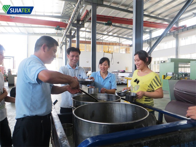 在酷暑季节工作的车间里,一碗由公司送来的绿豆汤,缓解员工工作后的疲劳,大家朴实无华的脸上露出舒心的笑容,车间里不断洋溢着员工们开怀的笑声。