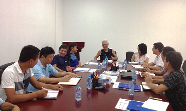 8月25日,集团主席林生雄、副总裁兼总工程师黄万能,技术总监、网络控制总监及车间技术与生产负责人齐聚会议室,聆听意大利工程师Marino先生、Matteo先生和Paolo先生为大家特地准备的技术工艺流程和控制系统培训。